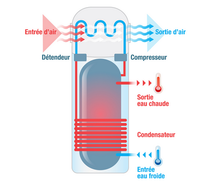 En termes de fonctionnement, un ballon thermodynamique agit de la même manière qu’une pompe à chaleur aérothermique c’est-à-dire que le ballon récupère les différentes calories contenues dans l'air afin dans le but de chauffer un liquide caloporteur qui va apporter de la chaleur au ballon et développer de l’eau chaude. En termes d’économie, le chauffe-eau thermodynamique permet de réaliser une économie d’énergie de 50% par rapport à une chaudière et 70% par rapport aux ballons à gaz ou électriques.